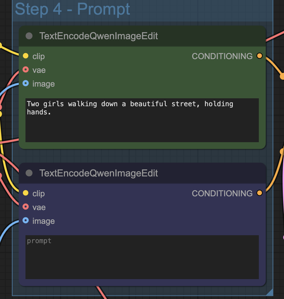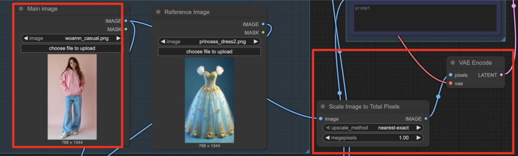 Because we are editing the girl’s image (the Main image node), the initial latent is set to the main image, NOT the combined one.