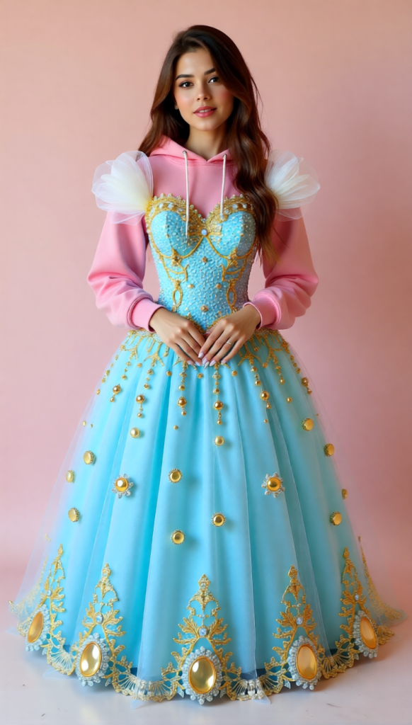 Well… Qwen took the task a bit too literally: it put the dress on her without taking off the hoodie!